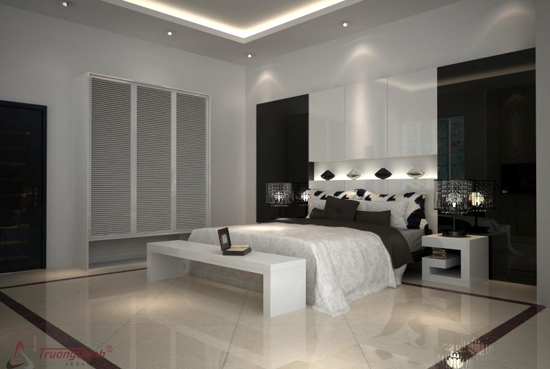 Đối với phòng ngủ bé hơn chúng ta nên chọn gạch lát nền mầu sáng, bóng để nó phản xạ ánh sáng tốt hơn, làm cho phòng ngủ rộng hơn.